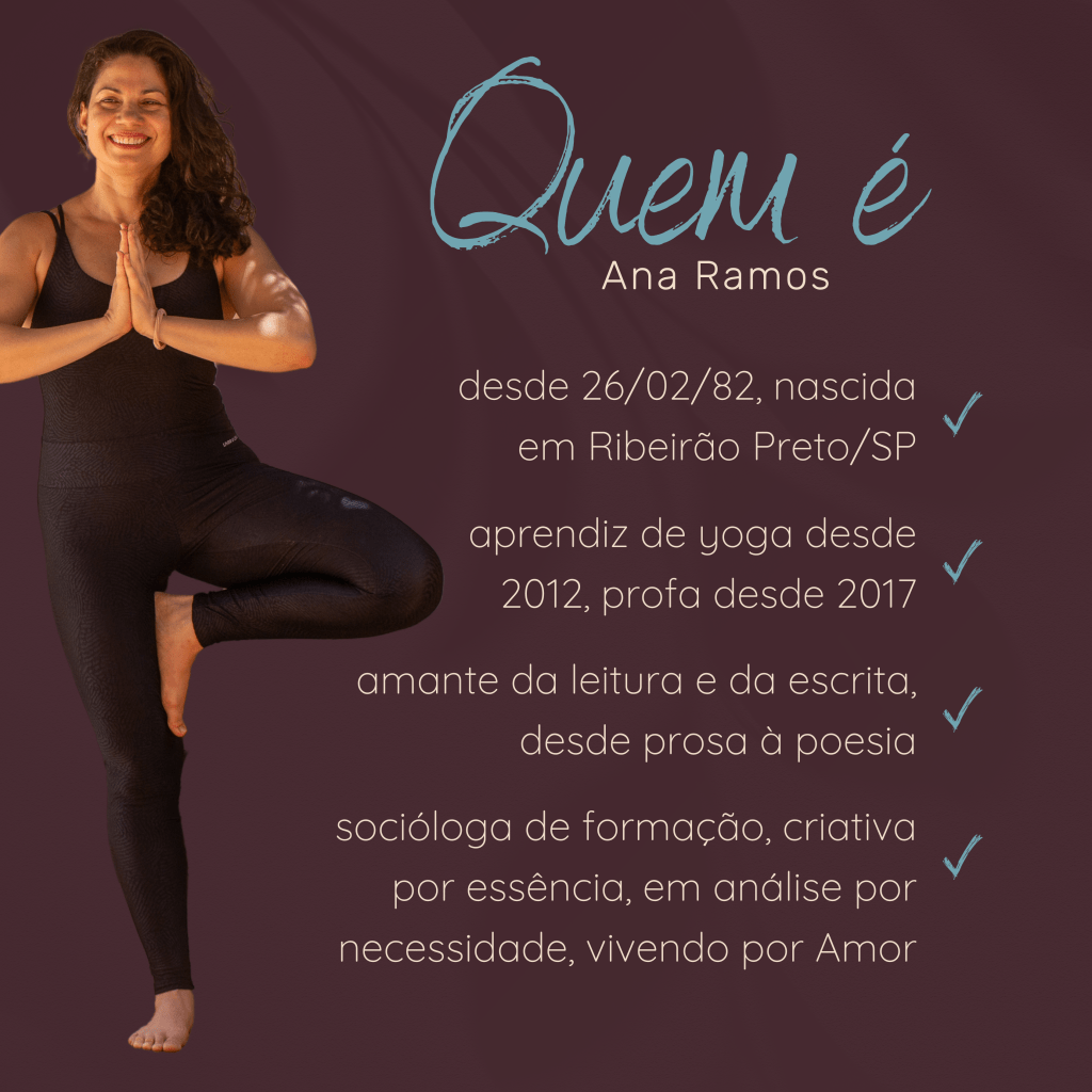 Comecei a prática de Yoga em 2012 sabendo muito pouco sobre a prática, mas as informações que tinha até então, seriam mais do que suficientes para eu nunca praticar, quem dirá ser professora, o que aconteceu em 2017. Me formei Socióloga, iniciei uma Especialização em Artes Visuais e Multimeios e tenho um MBA em Marketing. De lá para cá, assumi a paixão natural pela Antropologia e Psicanálise que sintetizam meus interesses pelas narrativas das histórias de cada pessoa em cada lugar e tempo.